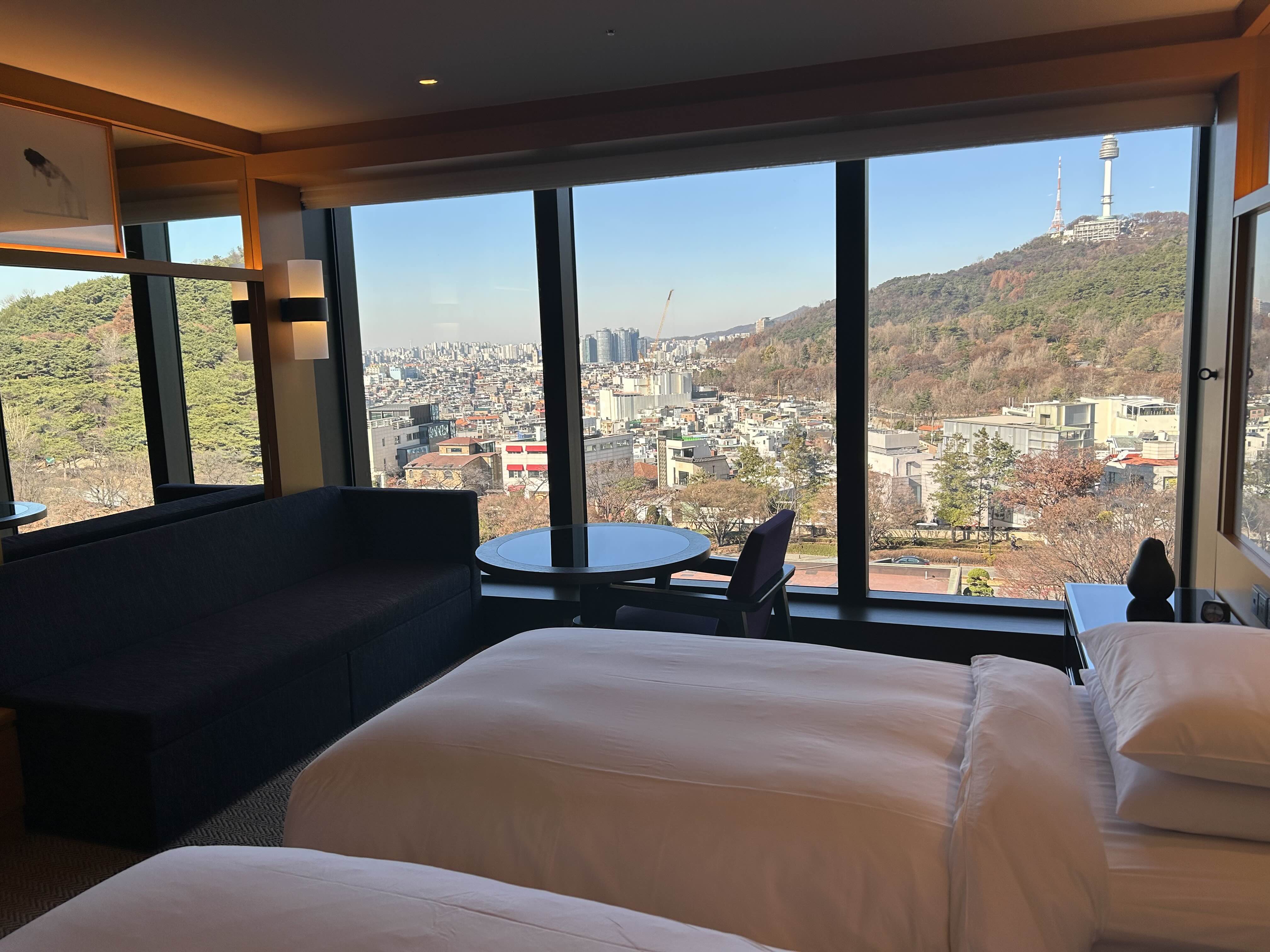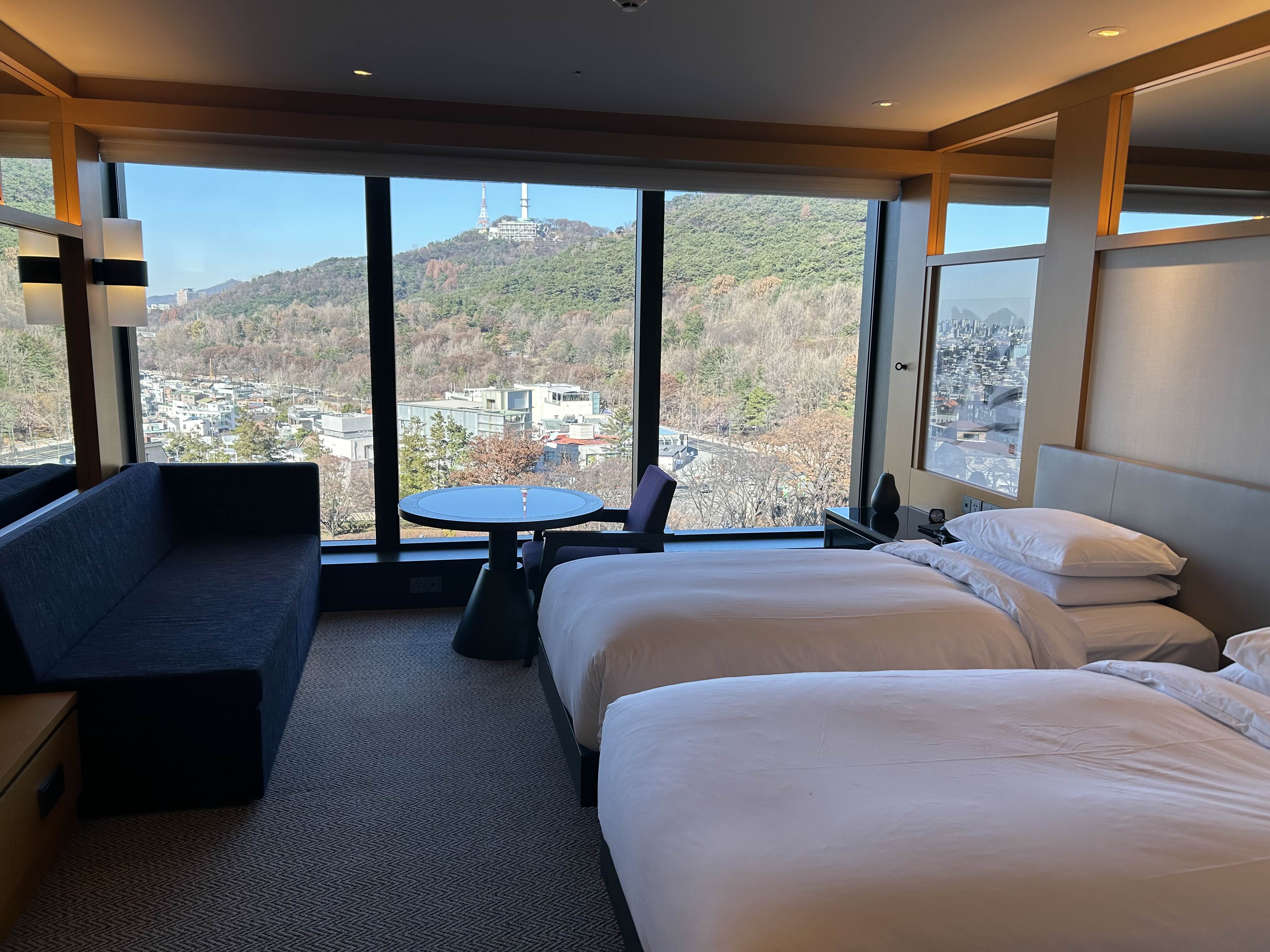 서울 남산에 위치한 가장 대표적인 랜드마크호텔 남산하얏트 호텔 다녀왔어요. 숙박을 하실때, 시티 뷰 와 남산이 보이는 마운틴뷰를 요청할수 있습니다. 저는 남산이 잘보이는 마운틴뷰 디럭스룸으로 숙박을 하였답니다. 서울 도시 접근성이 용이한점과 서울시 내와 남산을 볼수 있는 대표적인 호텔로 조용한 투숙을 원하시는 분들에게 추천하는 곳중 한곳입니다.