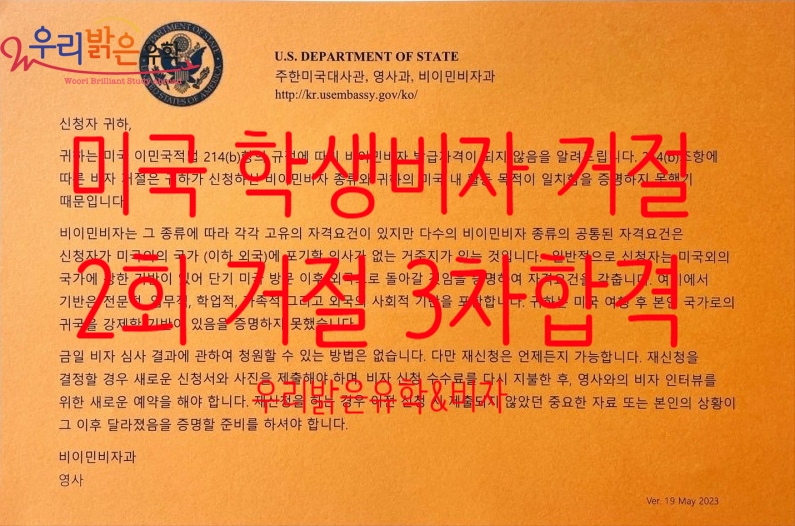 최근 미국비자 거절율이 정말 높아 지고있습니다. 미국 학생비자 진행을 하시는 분들 중 현대 대학생이 아니라면, 무직,직장인등 아차 하는 순간 거절 로 결과가 이어지는 순간이 많아 철저한 준비가 필요한듯합니다.