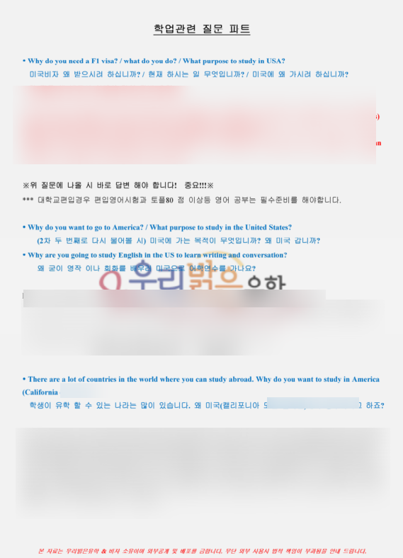 미국 1차 학생비자 인터뷰 내용